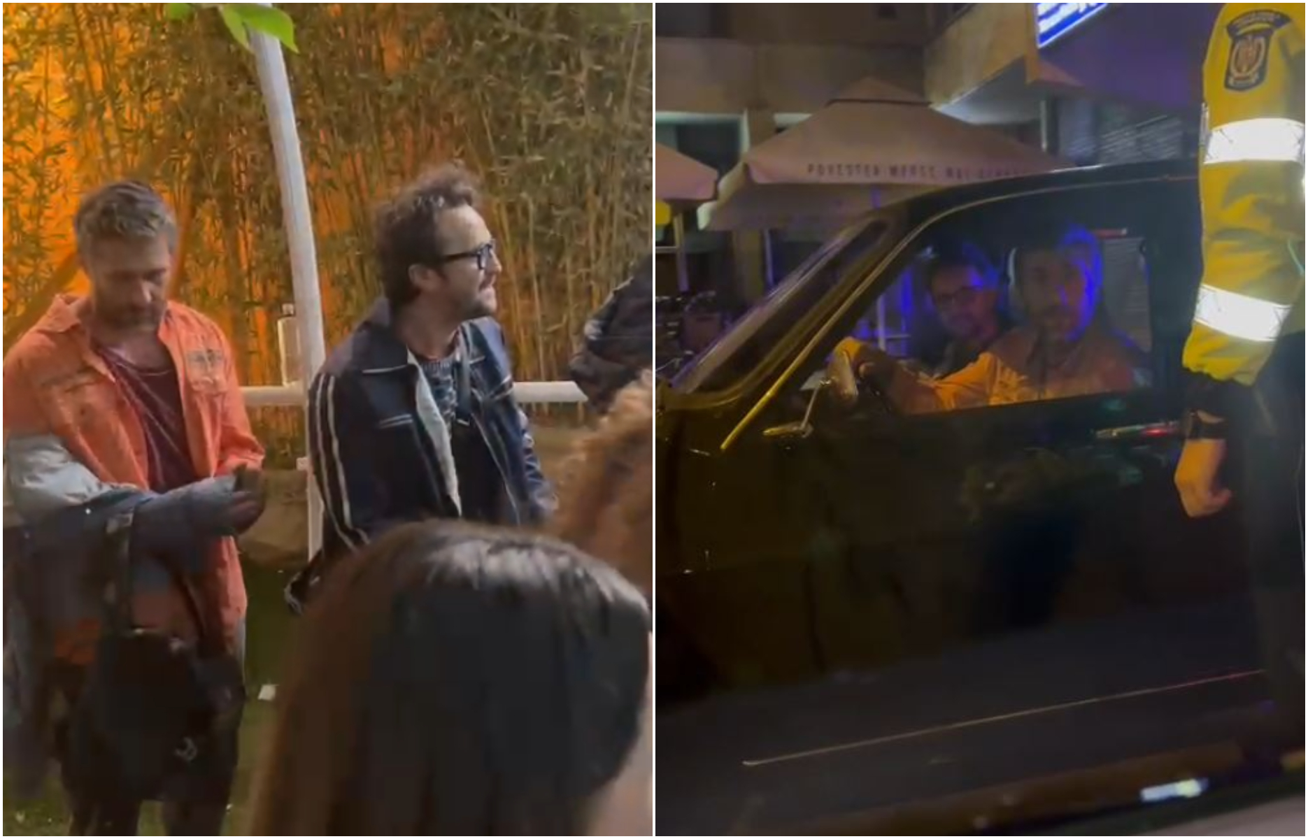 Peripețiile celor doi actori nu s-au oprit aici. Câteva minute mai târziu, după ce au părăsit parcarea din fața cluburilor de lux din Mamaia, Dorian Boguță și Dragoș Bucur, vizibil rătăciți pe străzile orașului, au fost opriți de Poliția Locală. Nu se știe exact motivul pentru care au fost opriți, însă celor doi li s-au cerut să prezinte actele lor și ale mașini, surprinzător de asemănător cu o celebra scenă dintr-un film. Din fericire, au scăpat cu fața curată, așa că actorii și-au văzut de drum.