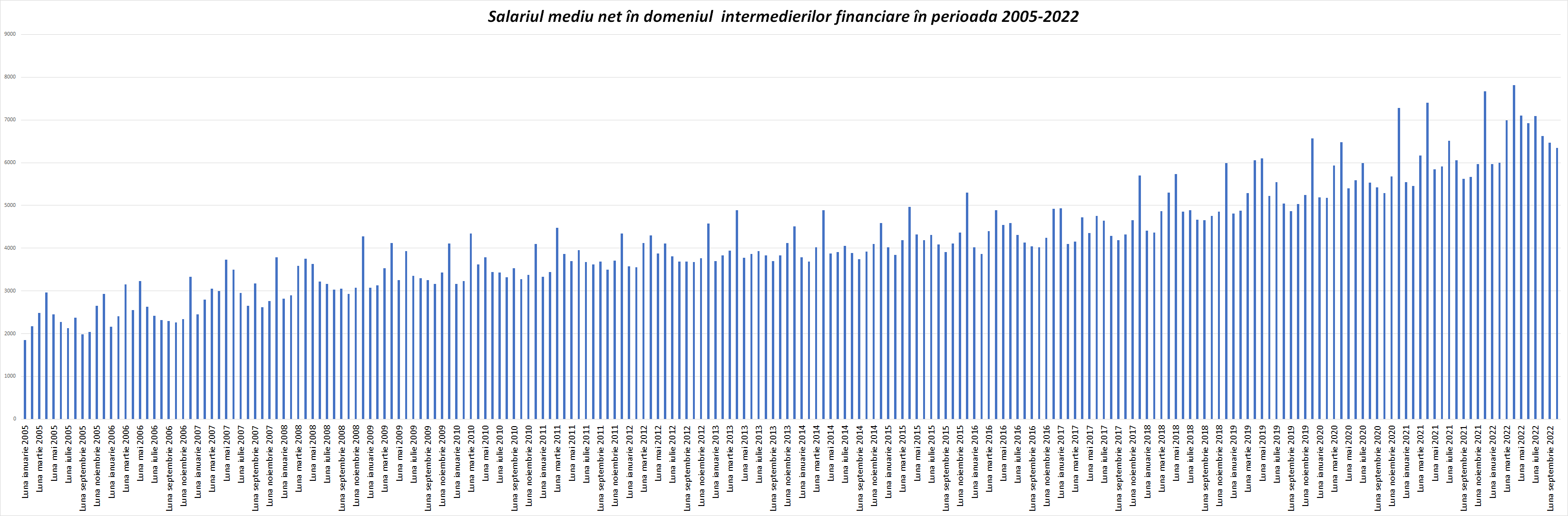 Evoluția salariilor nete în sistemul bancar în perioada 2005-2022