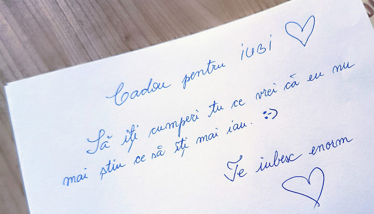 „Cadou pentru iubi. Să îți cumperi tu ce vrei, că eu nu mai știu ce să îți mai iau. Te iubesc enorm”, scrie în mesajul devenit viral pe internet.