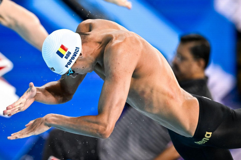 Singura medalie obținută de România până acum este aurul la 200 metri liber, câștigată de înotătorul de excepție David Popovici.