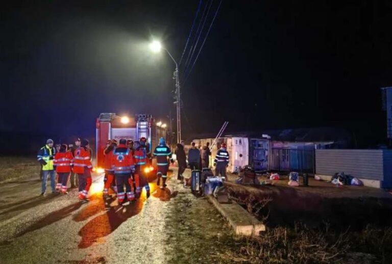 Un autocar în care se aflau 35 de persoane, membri ai unui ansamblu folcloric,...