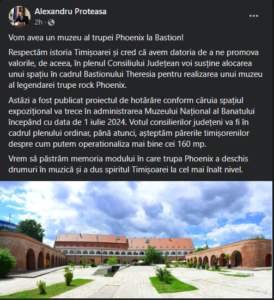 Într-un demers menit să conserve și să promoveze patrimoniul cultural, Consiliul Județean Timiș anunță cu entuziasm deschiderea unui muzeu dedicat celebrei formații rock Phoenix.